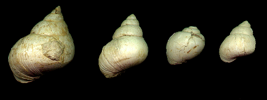 From left to right they are Viviparous angulosus, Viviparous lentus, Globularia patula and Globularia grossa.