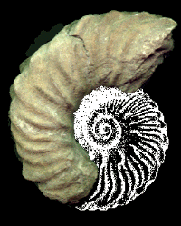 Although most of the ammonites from this area belong to the Jurassic, on occasions Cretaceous examples can be found. This is Euhoplites. Only the living chamber is intact and I have superimposed it on a drawing to give some idea of how the whole animal looked.