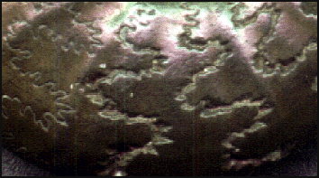 I must include this item in this section. Strictly it not an ammonite, it is a nautiloid. Fairly battered and lying among the rocks, this is a Cretaceous ancestor of the pearly nautilus. Because of the size of the specimen, I left it behind for someone else.