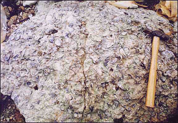 This is a piece of the large expanse of mussel beds that are exposed on the east coast of the Isle Of Wight. They are from the Eocene Bembridge beds. The creatures were living so close together that the shells have become distorted making identification difficult. The images below are of specimens I extracted from one of the shelly masses.