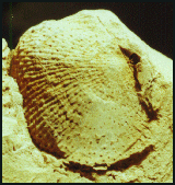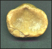These images are of the pedicle and brachial valves of Productus sp. (possibly productus or semireticulatus). These brachiopods anchored themselves in the sediment by long fragile spines on the pedicle valve. Weathering has removed all trace of the spines from the specimen pictured above.