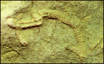 This is a 'stick' bryozoan from the limestone of Wenlock Edge. They are very common in the silurian deposits of this area and were important contributers to the building of the reef limestone.