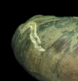 Although these specimens look like the shells of molluscs or ammonites they are in fact the calcareous armour secreted by worms. These most likely belong to the genera Rotularia from the Cretaceous but similar types of worms have been found encrusting mollusc shells back to the Ordovician.